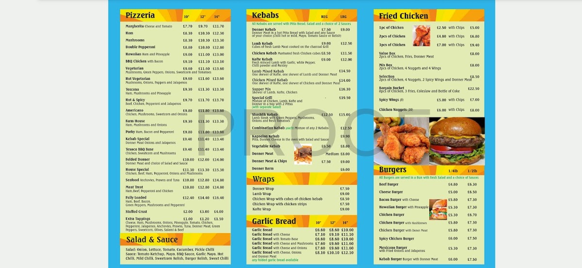 Among the highlights, you’ll find charcoal-grilled lamb and chicken kebabs served in soft pitta bread with fresh salad and your choice of sauce, as well as 12-inch pizzas you can customize with a variety of toppings. Other comforting options include cheesy garlic bread, crispy fried chicken pieces, and value-packed meal deals designed for sharing or a filling solo treat.